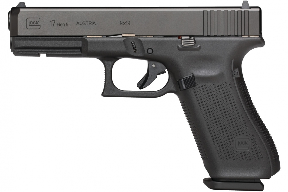 The new frame design of the GLOCK 17 Gen5 removed the finger grooves for more versatility but still allows it to easily customize its grip by using the different back straps. A flared mag-well and a cutout at the front of the frame give the user more speed during reloading when fractions of a second matter. A reversible enlarged magazine catch, changeable at user level as well as the ambidextrous slide stop lever accommodate left and right-handed operators. The rifling and the crown of the barrel were slightly modified for increased precision.